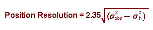 where sigmaobs is the standard deviation of the distribution as given by the Gaussian part of the fit and sigmah is equal to one-half of the hole radius (0.125 mm) and is the correction factor for the finite size of the holes.